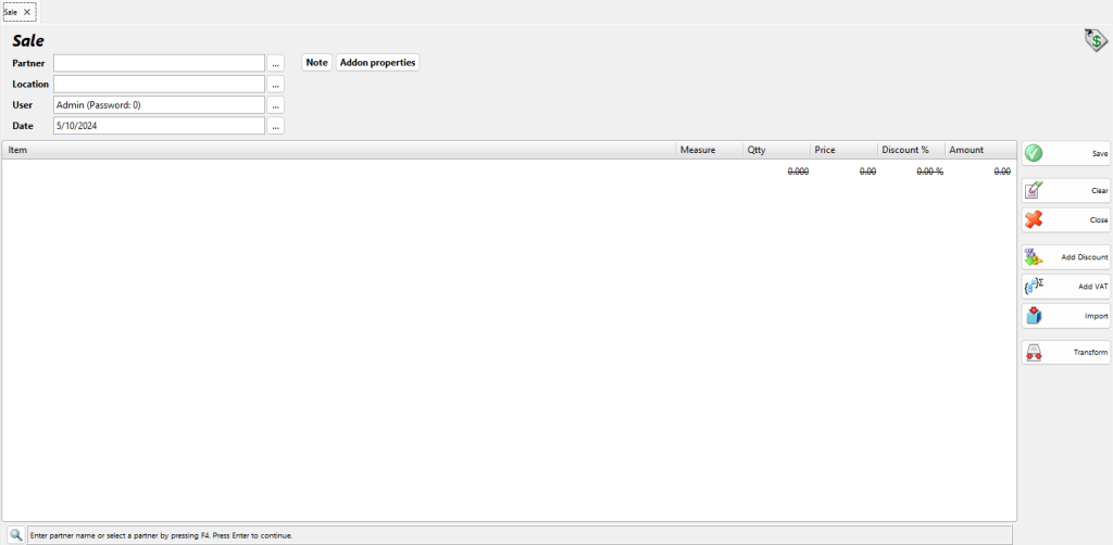 Sales is the most frequently used operation. It represents the sale of goods and services to clients or partners. Sales decrease quantities of chosen items in your warehouse and transfer them to the partner. The operation is completed by payment and issuing of a document. The operation represents the accounting term “Expenses”.